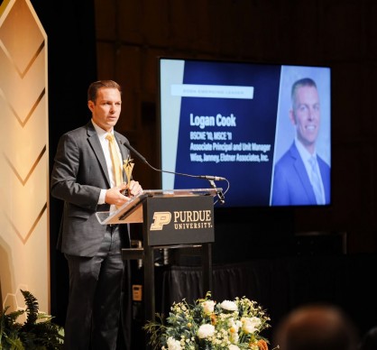 Engineer Logan Cook received the Emerging Leader Award from the Lyles School of Civil and Construction Engineering at Purdue University, honoring the alumnus’ career success, work ethic, and contribution to his community.