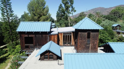 After nearly a decade of careful preservation work, the historic hand-built redwood main house, guesthouse, and workshop roofs of one of Southern California’s most treasured Arts and Crafts landmarks, the Sam and Alfreda Maloof residence, have been restored.