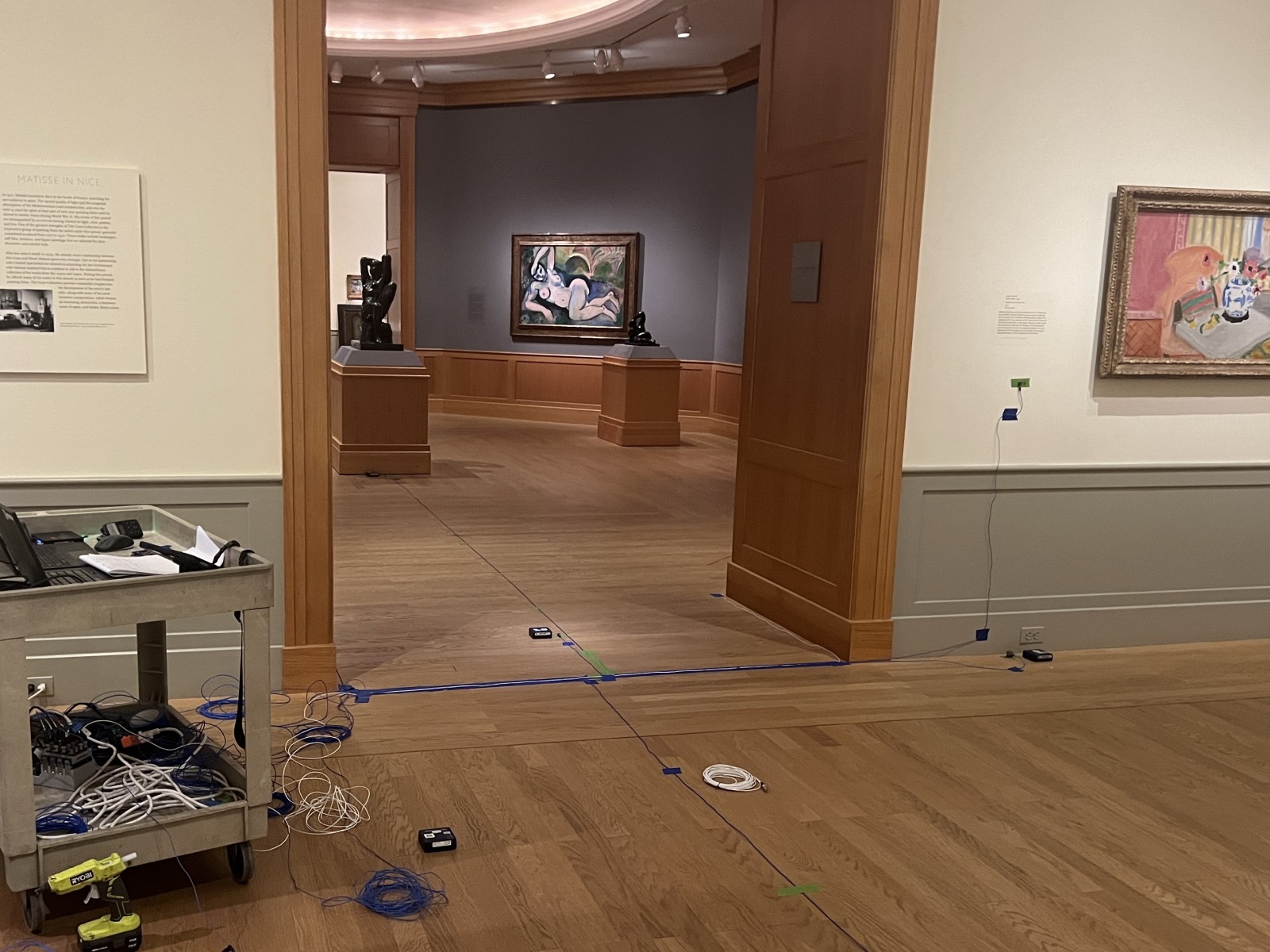 At the start of construction, vibration trials were conducted to verify vibration transmission for equipment not tested earlier. During construction, vibration monitoring was performed along “safe lines” between the construction and art collection areas. Monitors were programmed to send notifications of any above-threshold vibrations so that work could stop, the data reviewed, and methods changed if appropriate before construction resumed.