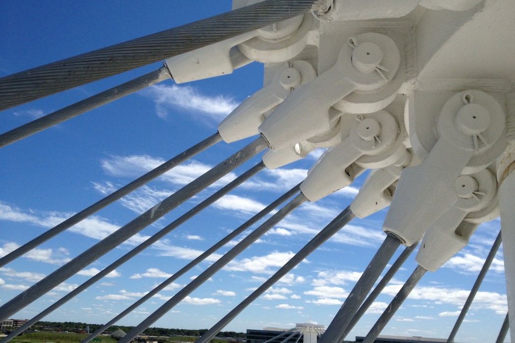 The exterior cables of the roof system at a midwestern corporate headquarters are exposed to weather and, unlike stays or suspender cables in many cable-supported bridges, no outer jacket or other covering is present along the length of the cables. As a result, the condition of the cables is entirely reliant upon the galvanized coating of the cables for corrosion protection. During an inspection in 2007, surface corrosion was observed on the surfaces of the exterior cables in several localized areas.