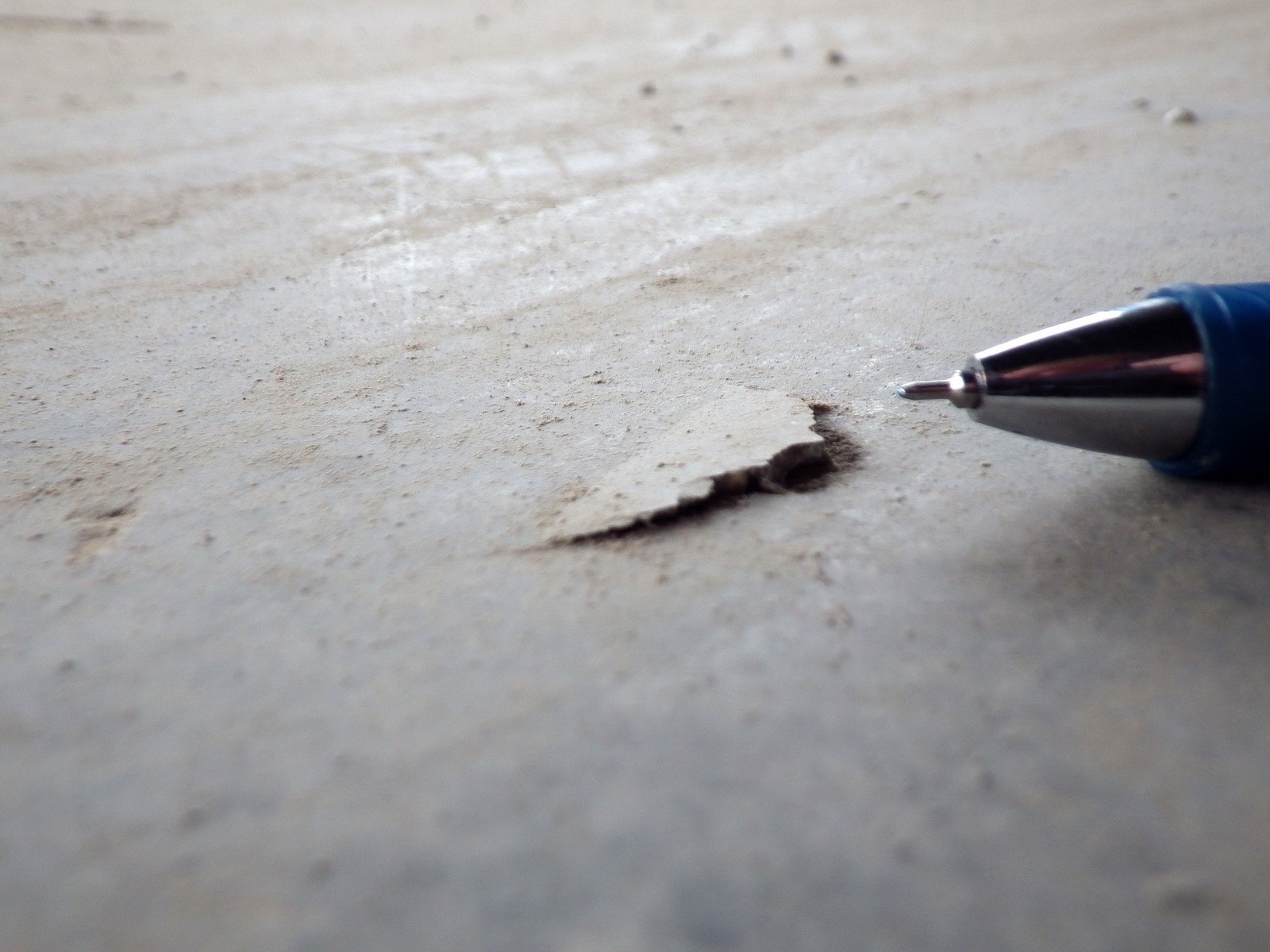 Isolated concrete pop-outs were discovered in the surface of the soil-supported concrete slab during tenant finish out. While the distress was not operationally significant to the first tenant, leasing to subsequent tenants required that the cause of the distress be understood and that the slab be repaired or replaced, depending on future occupancy.