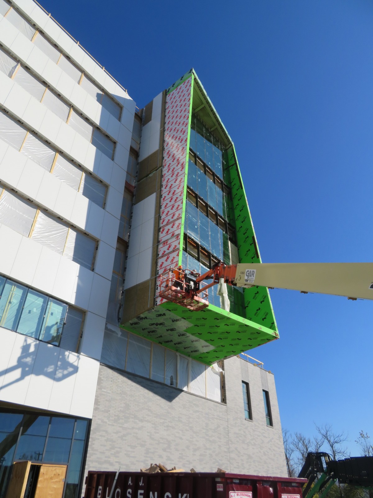 WJE was engaged by the owner’s representative to provide design peer review, on-site quality assurance, and other building enclosure consulting services. The WJE team worked in close collaboration with the project team in later parts of design and throughout the construction phases of the project to assist in delivering a quality new education and healthcare facility that effectively manages heat, air, and moisture transfer through the building enclosure.