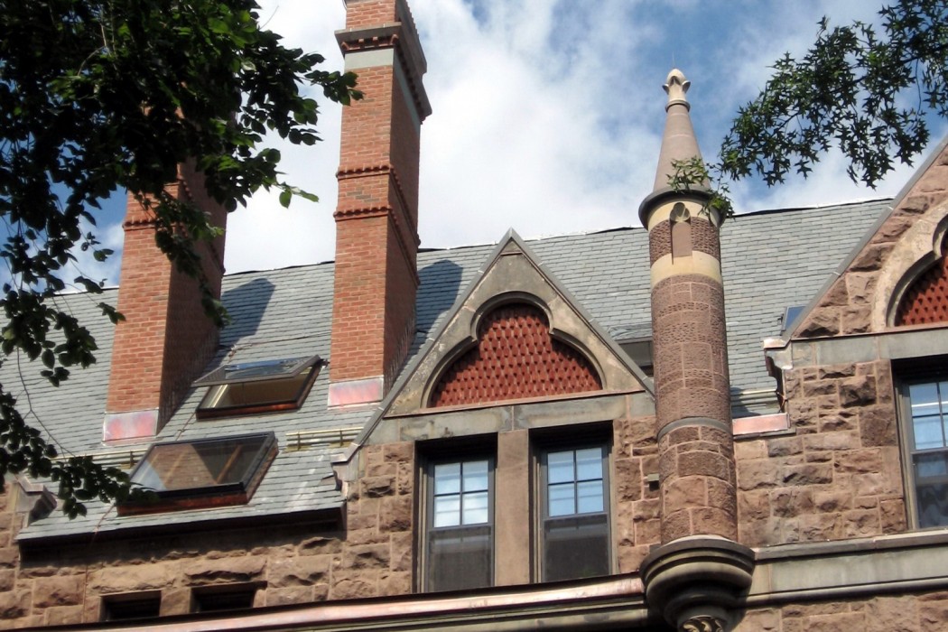 The instability of the stone turrets, scaling of the brownstone facade, spalling brick at the chimneys, falling slate, and decay at wood windows prompted Yale University to ask WJE to perform a condition assessment of the building exterior and to develop a restoration program.
