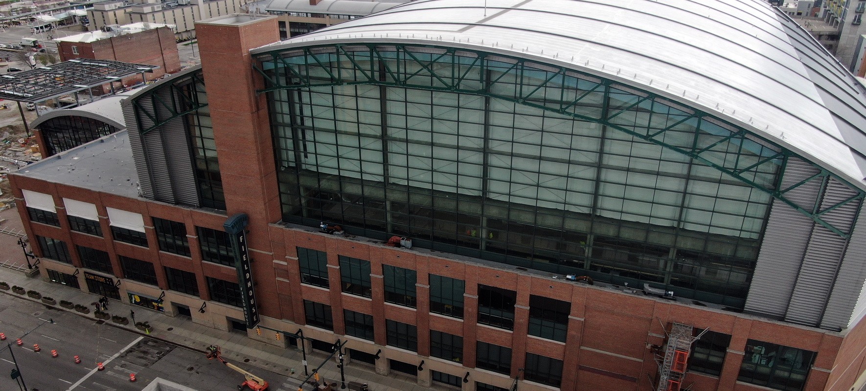 Completed in 1999, the recently renamed Gainbridge Fieldhouse is approximately 750,000 square feet and serves as the primary venue for the Indiana Pacers and the Indiana Fever basketball teams. The fieldhouse is covered with seventeen separate roof areas and clad with a combination of brick, limestone, metal panels, and curtain wall systems. In 2020, the Capitol Improvement Board of Managers for Marion County (CIB) and Pacers Sports and Entertainment commenced the Fieldhouse of the Future project, which included renovations to the fieldhouse to update the interior amenities, adding an outdoor terrace, and constructing the Bicentennial Unity Plaza. The work also included exterior building enclosure repairs.