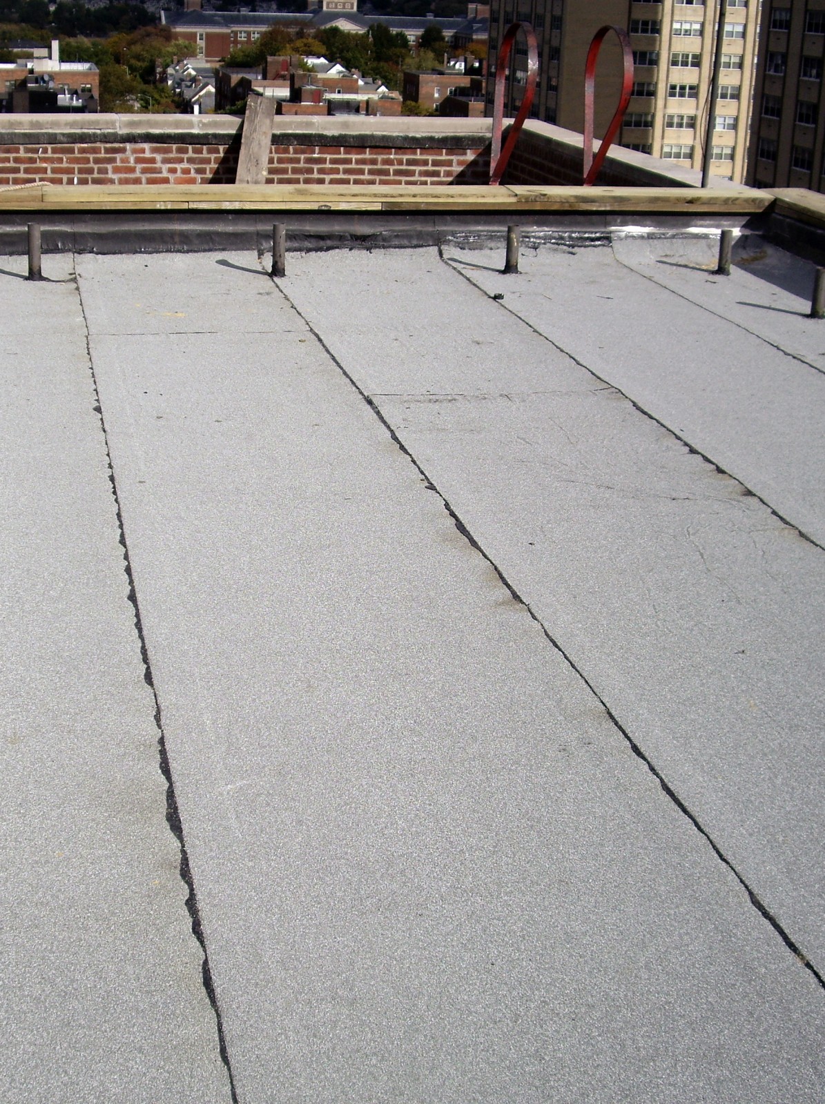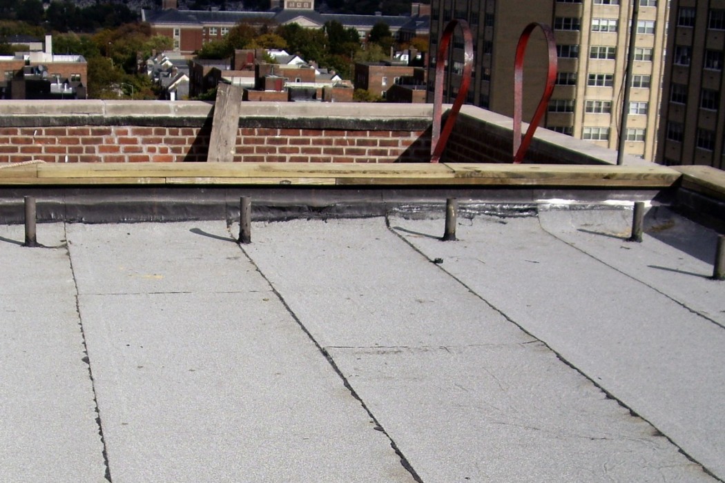 The upper floors within the hospital experienced chronic water infiltration through the roof and also through numerous rooftop mechanical units and ducts. The new roof system needed to correct the water infiltration problems and to comply with FM Global requirements. The new roof system also had to be constructed directly over several operating rooms, which could only be taken out of service sporadically at night and over weekends. There were numerous unique flashing conditions presented by the configuration of the roofs and their various penetrations.