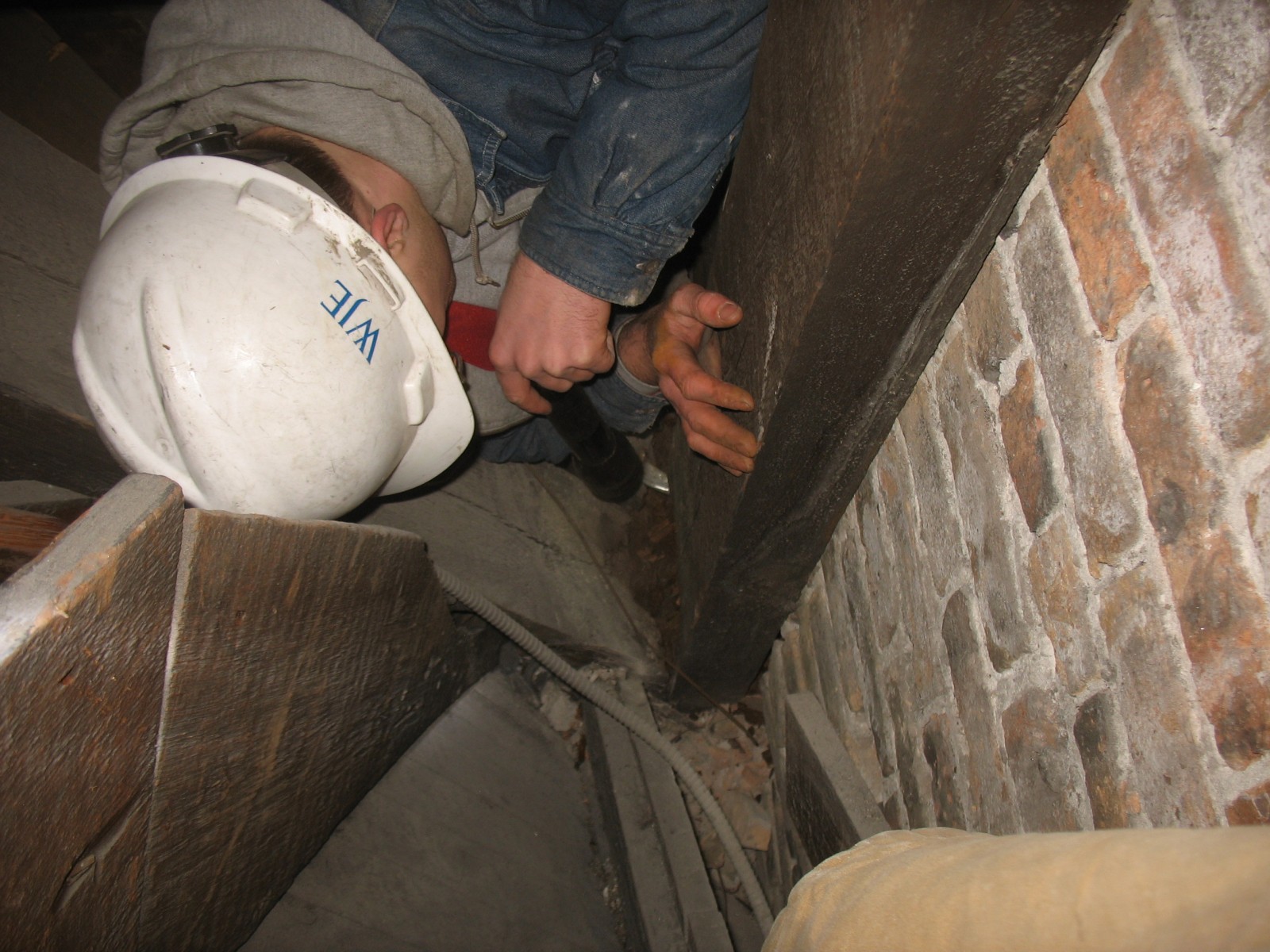 The Holy Name Cathedral—a Chicago landmark and Cathedral for the Archbishop of Chicago—was originally constructed in 1874. The structure consists of stone and brick masonry walls, cast iron interior columns on the lower level, heavy timber wood columns on the upper level, and heavy timber wood roof trusses. In the early 1890s, an extensive renovation of the Church included replacement of the original plaster ceiling with a new ornate decorative wood ceiling and replacement of the original wood clearstory walls with stone masonry clearstory walls.
