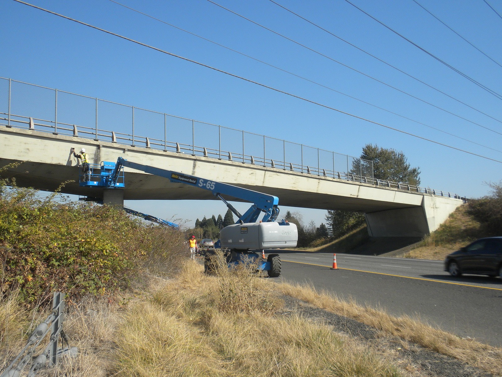 Three different erection methods were employed in constructing this bridge: conventional cast-in-place spans with draped longitudinal web tendons, cantilevered segmental cast-in-place, and cantilevered segmental precast. The bridge includes longitudinal, transverse, and vertical post-tensioning.
