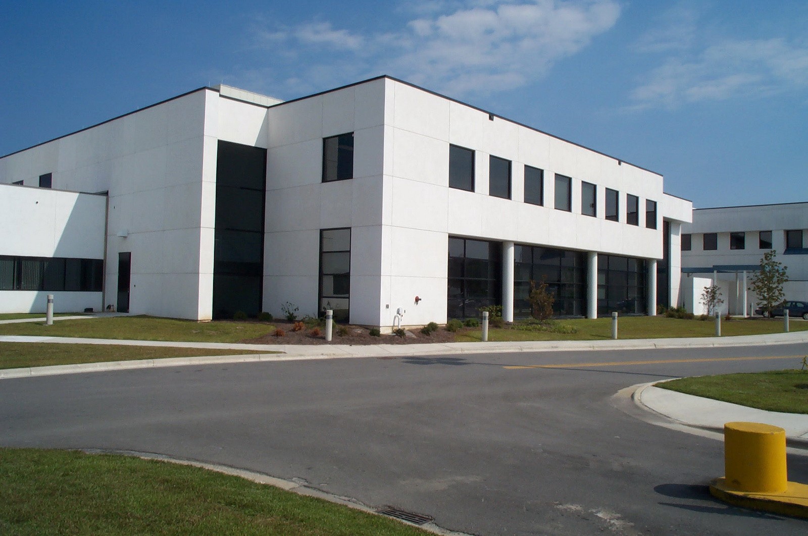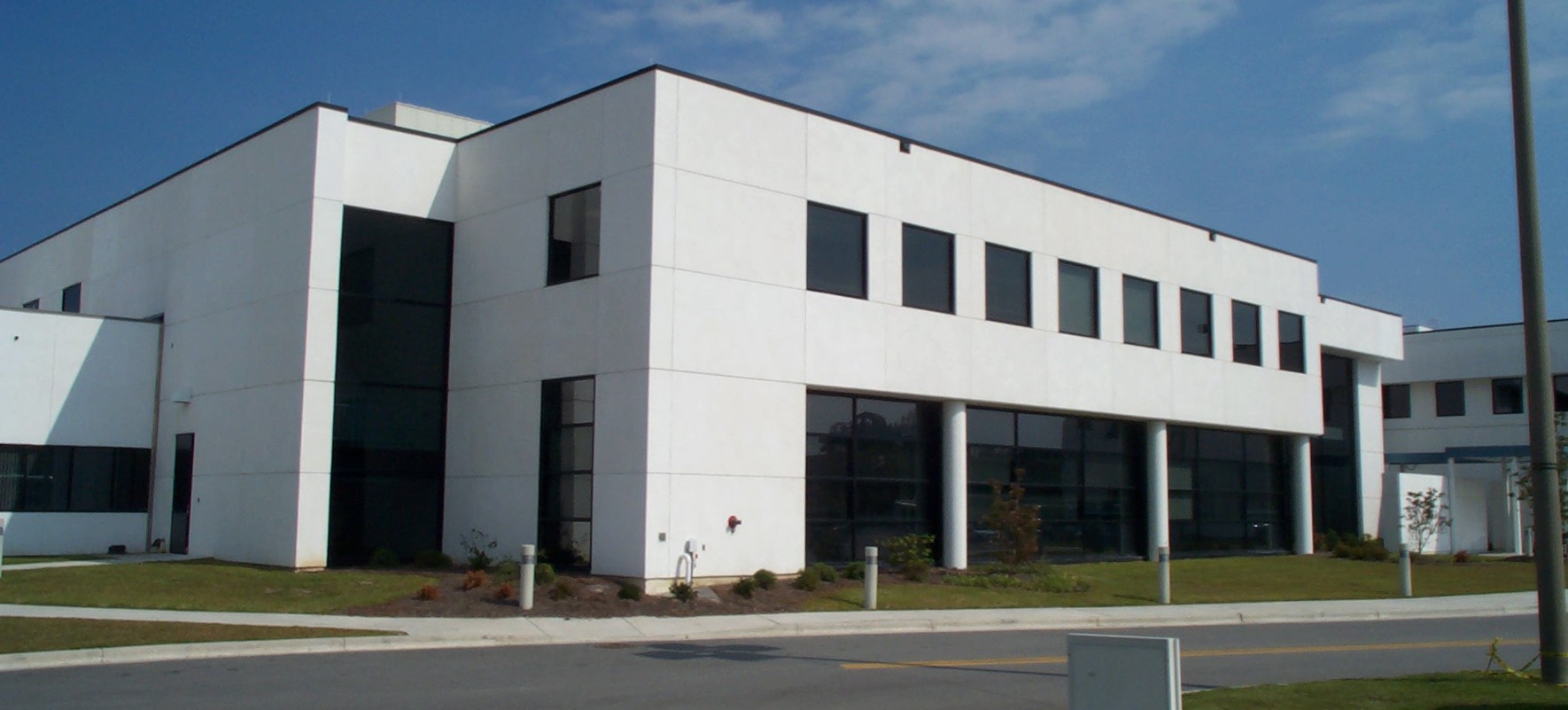 The neonatal intensive care unit of Pitt County Memorial Hospital is a two-story steel-frame structure clad with stucco. The building was constructed in 2003 and houses fifty beds in addition to office and support spaces.