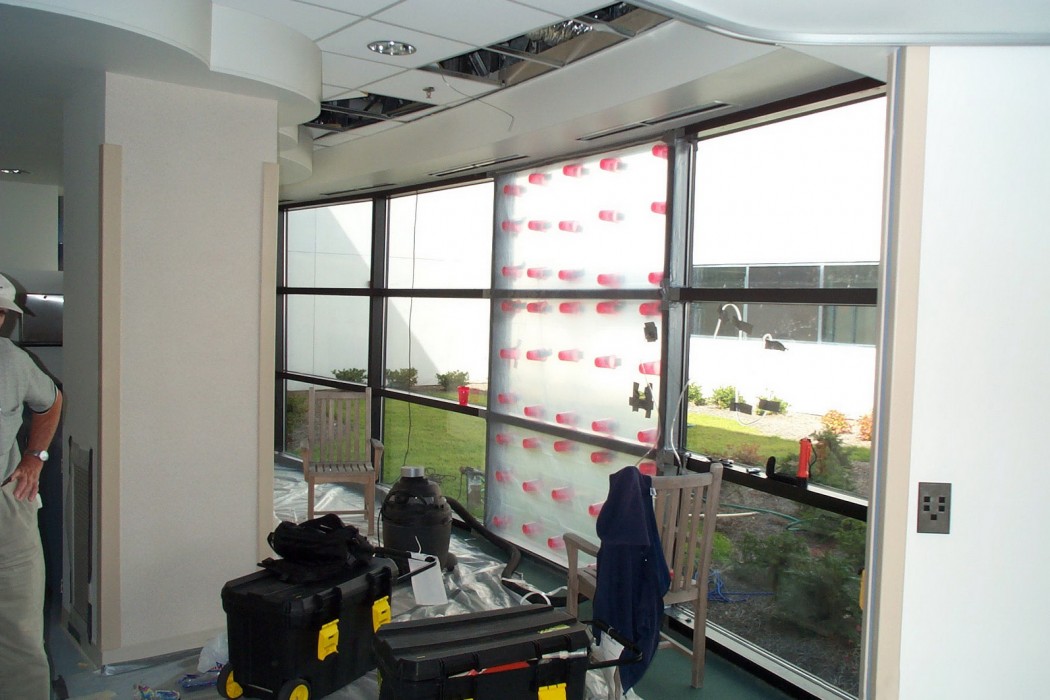 Water leakage began occurring shortly after completion of this new hospital structure. The leakage affected operations within the facility. To remediate the problem, the sources of the water leakage had to be identified and appropriate repairs developed. Due to the sensitive nature of the building operations, the owners wanted to minimize any chance of future water leakage.