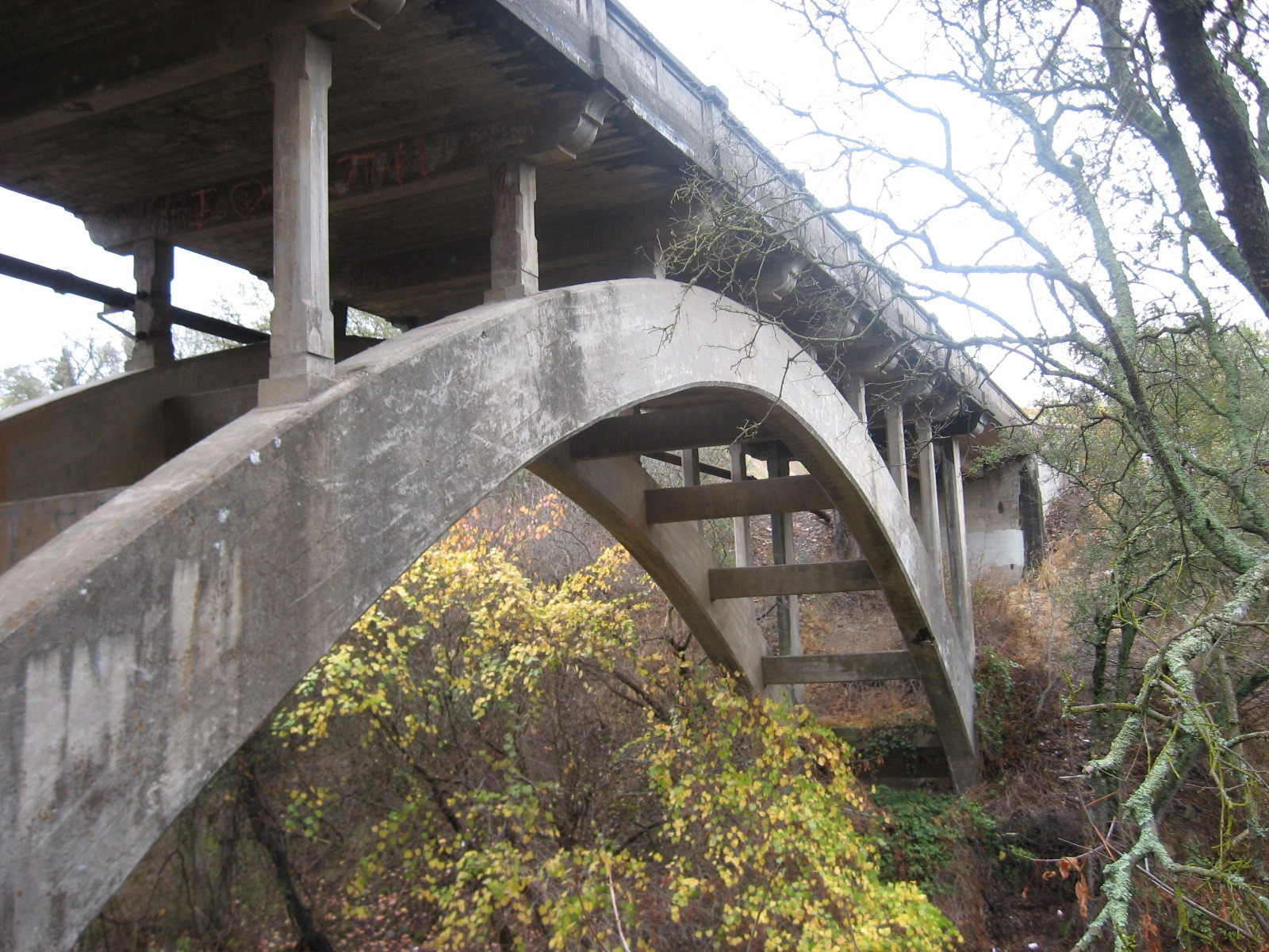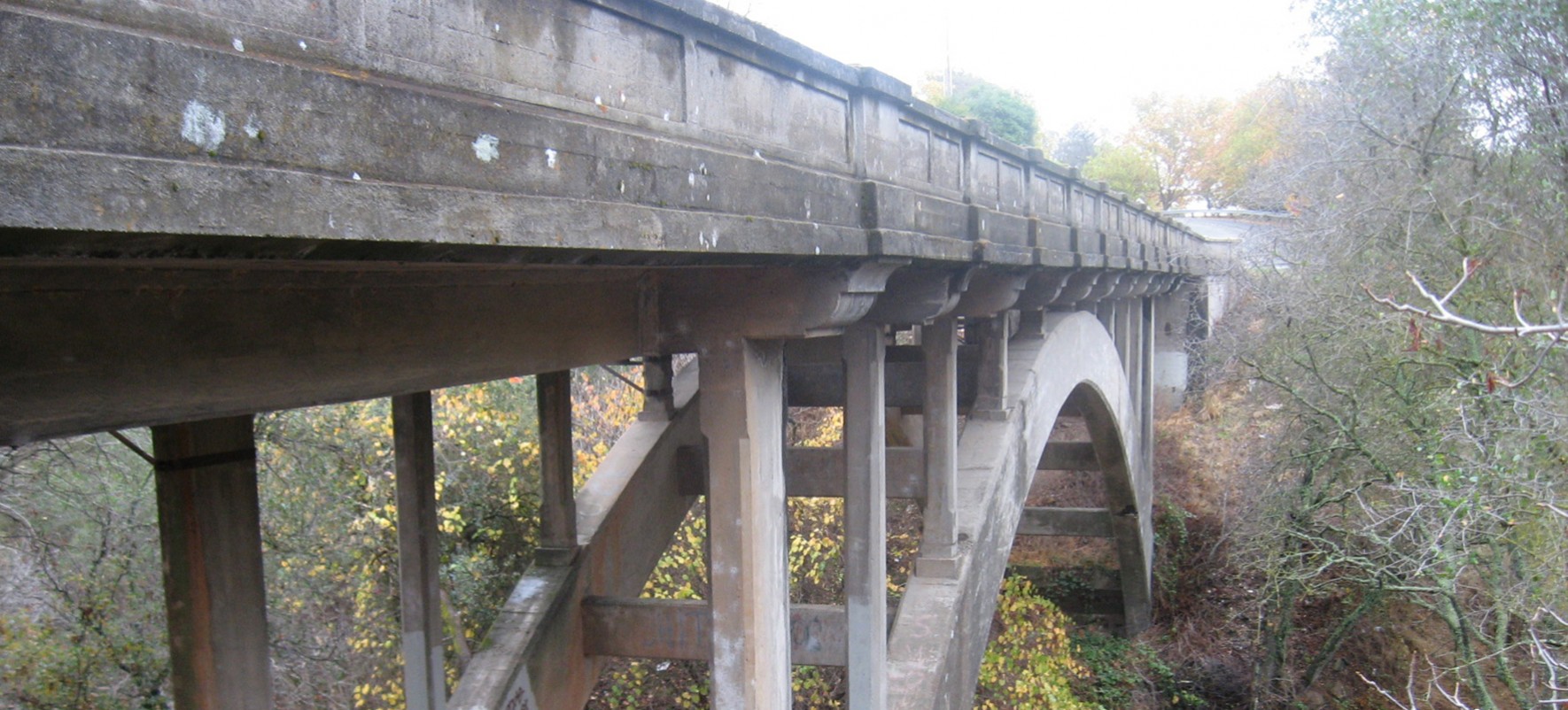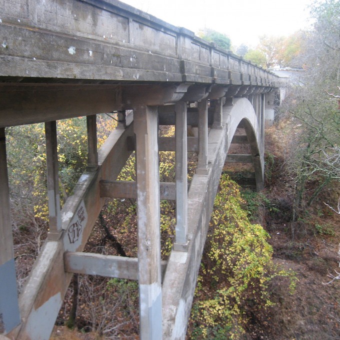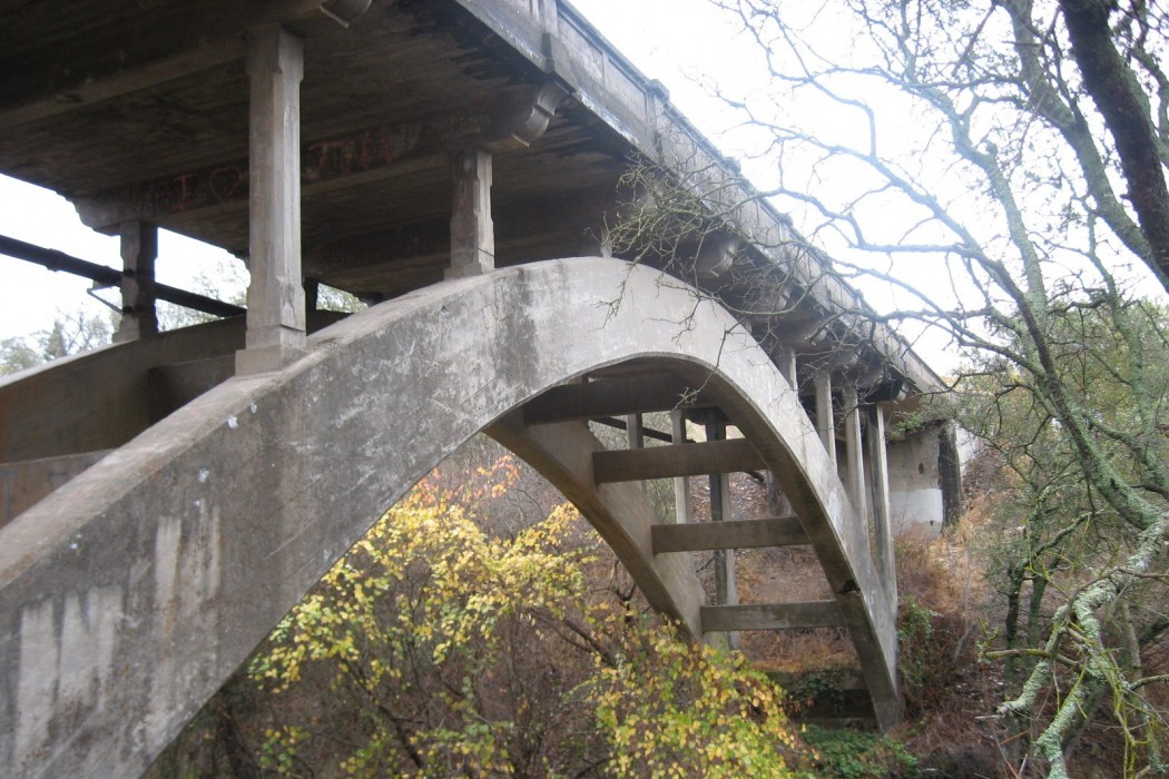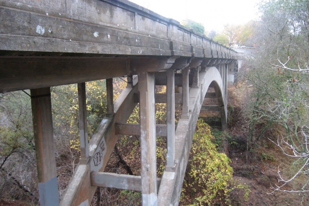 Constructed in 1915, the Orangevale Avenue Bridge is one of the oldest bridges in Sacramento County that is still in use. Spanning 160 feet, the reinforced concrete arch bridge features open spandrel columns and a T-beam superstructure.