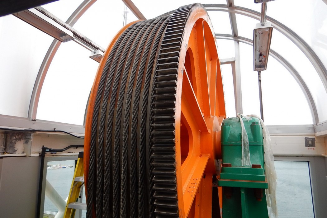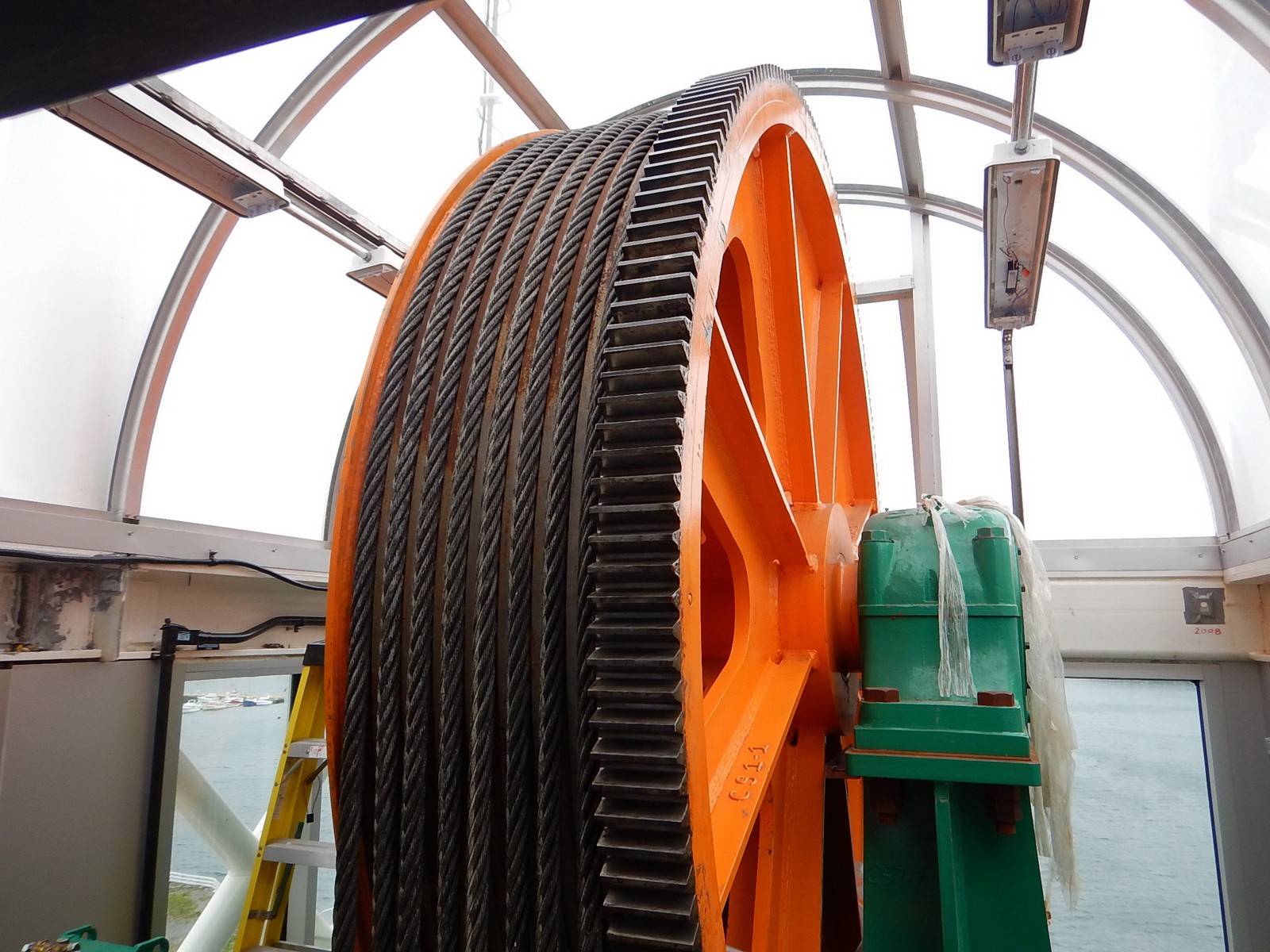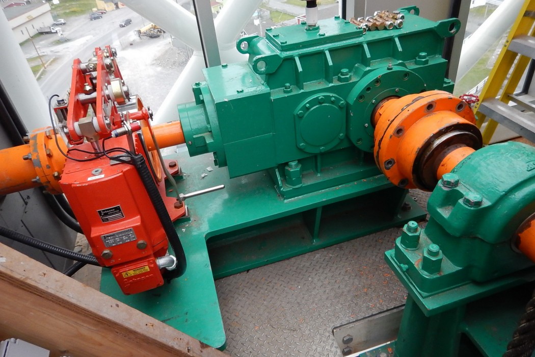 WJE’s design features two mechanically independent tower drive systems. Rolling element main counterweight sheave bearings were selected to minimize friction and maintain a compact machinery package that would fit in the available space.