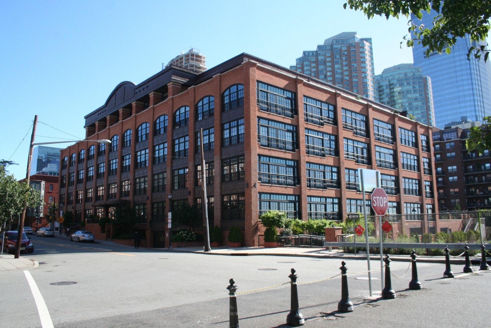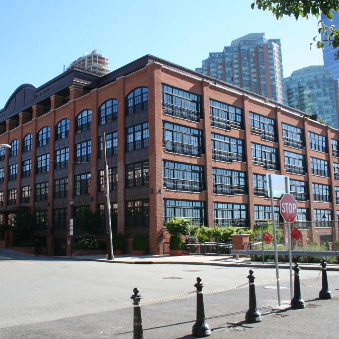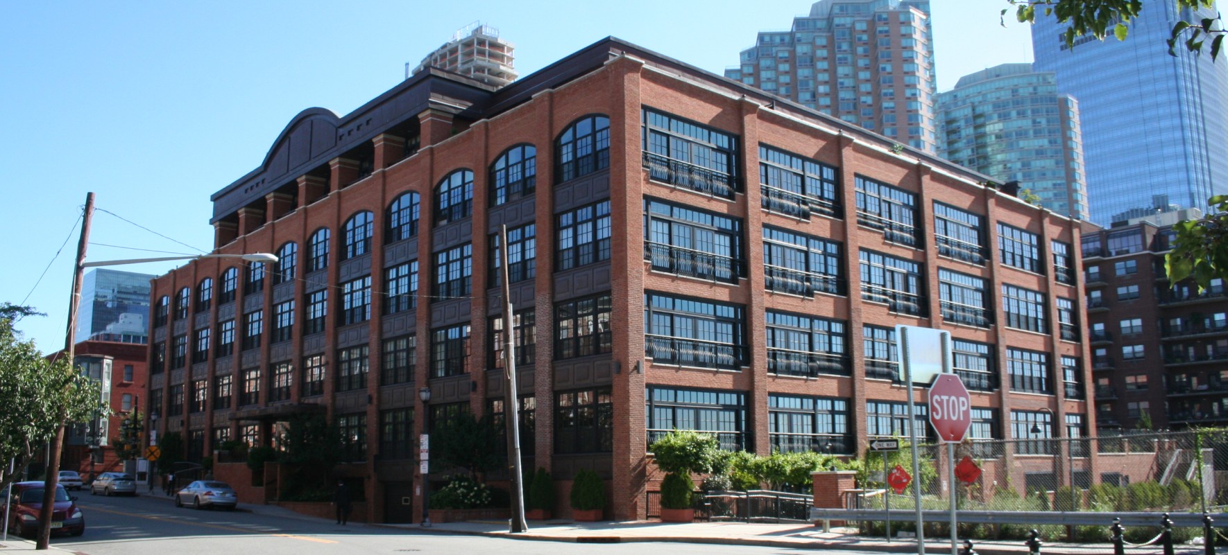 Sugar House is a four-story masonry building with a basement-level garage and fifth floor penthouses. The building was constructed as a two-story sugar warehouse in the 1860s. The top two floors and penthouses were added when the building was converted to condominiums in 2001. The addition included new masonry rising and parapet walls and new terrace waterproofing.