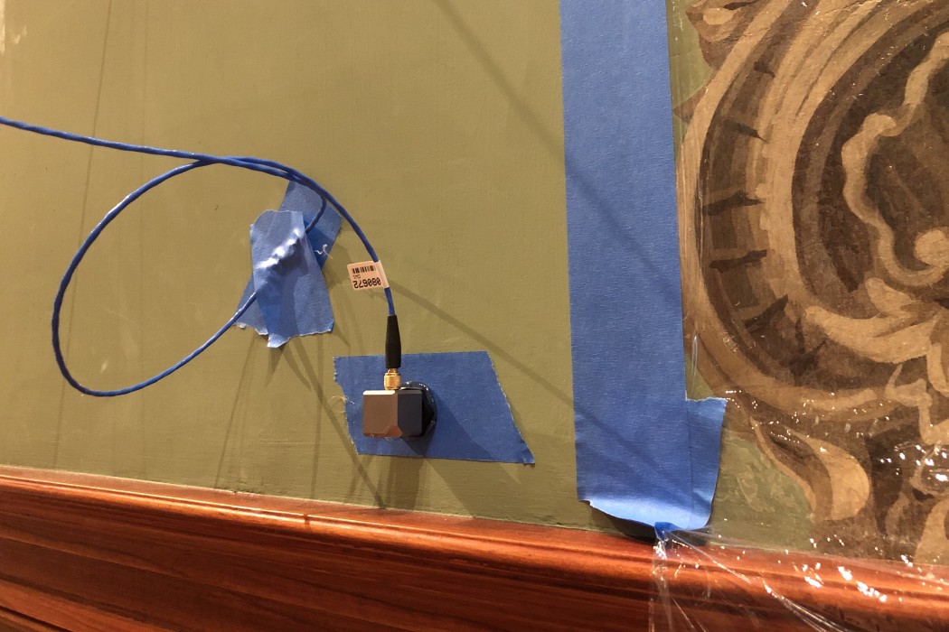Before construction to the museum building itself, we performed extensive vibration testing in and around the mural gallery to estimate potential vibration levels at the murals. We conducted mock construction activities in the mural gallery, in the attic above the mural gallery, and at exterior walls adjacent to the mural gallery to measure vibrations at the boundaries of the murals. Using that data, we developed a vibration control specification and contractor guidance document. During construction, we monitored vibrations around the murals, as well as strain in the plaster finishes across the murals, using a custom system of accelerometers and strain gages. The system provided immediate notifications of any above-threshold levels throughout the construction.